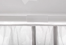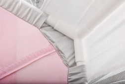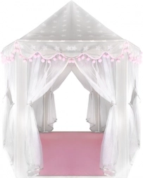 Salteaua spațioasă și lateralele aerisite asigură confort pentru unul sau mai mulți copii – încap o mulțime de pernuțe, plușuri și cărți. Cortul este perfect pentru interior și pentru grădină sub supravegherea adulților. Pompoanele decorative și posibilitatea de legare a draperiilor cu funde oferă jocului stil și intimitate.