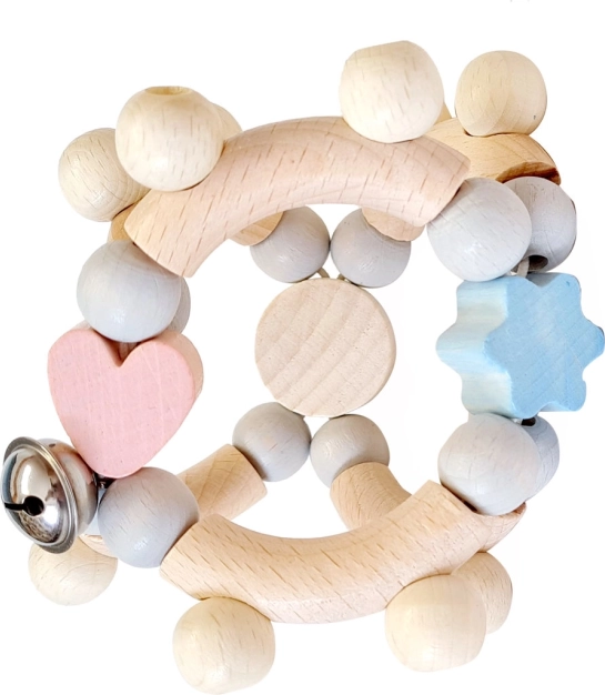 Zornes motorice din lemn de la marca Hess atrage privirile cu culorile pastelate și clopoțelul care susțin imaginația și îmbunătățesc motricitatea fină a copilului.