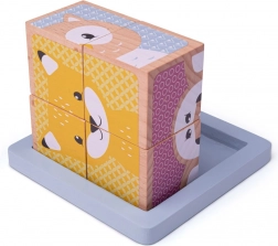 Aceste cuburi din lemn de la Bigjigs Baby permit crearea a șase modele diferite ale animalelor din pădure.