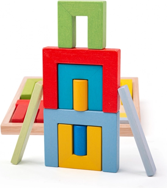 Formele din lemn pentru construit BIGJIGS TOYS le oferă copiilor posibilități nesfârșite de creație – de la poduri și turnuri înclinate până la modele originale. În timpul construirii, antrenează în mod natural coordonarea mână–ochi, imaginația spațială și diferențierea culorilor și a mărimilor.