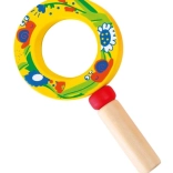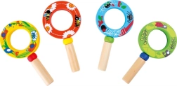Mânerul neted din lemn se potrivește perfect în mâna copilului și permite o ținere confortabilă și sigură în timpul explorării.