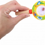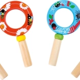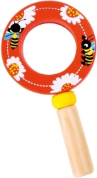 Această lupă de calitate pentru copii combină un mâner din lemn robust și un element optic din plastic ușor, pentru a fi sigură și confortabilă pentru mâinile mici. Ilustrațiile vesele cu insecte și flori îi motivează pe copii să descopere detaliile lumii înconjurătoare – de la flori până la gândăcei.