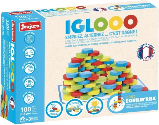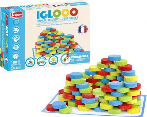 Cu setul de construcție din lemn Jeujura Igloo, micii constructori pot începe să creeze o structură solidă și elegantă. Această jucărie sprijină abilitatea de concentrare și dexteritatea motorie fină, ideală pentru copiii de la trei ani. Setul este realizat cu grijă din lemn de fag și pin provenind din Franța. Fiecare piesă este vopsită cu culori sigure pe bază de apă, asigurând conformitatea cu normele ecologice.