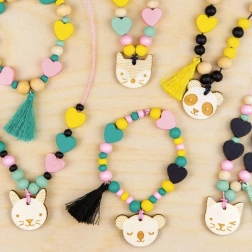 Acest set creativ îi va încânta pe toți micii designeri de bijuterii. Datorită conținutului bogat, copiii pot combina cu ușurință mărgele din lemn, inimi, ciucuri și pandantive cu animăluțe pentru a crea accesorii unice, exact după imaginația lor. Este inclus și un ghid clar, astfel încât realizarea bijuteriilor este simplă și distractivă.