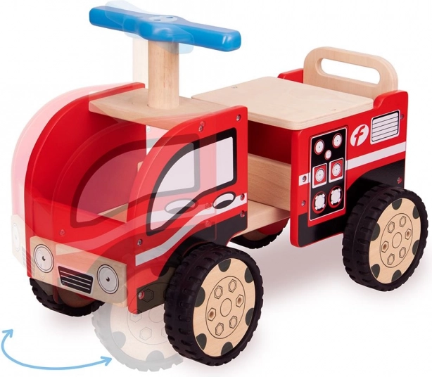 Acest vehicul din lemn este însoțitorul ideal pentru toți micii iubitori de mașini de pompieri. Ușor de manevrat și cu două spații de depozitare, oferă nu doar distracție, ci și utilizare practică pentru depozitarea jucăriilor sau a plușurilor. Datorită culorilor vii, devine un accesoriu excelent pentru orice cameră de copii.