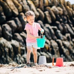 Uitați de plasticul care crapă. Această găletușă de plajă din silicon de la BIGJIGS TOYS este ușoară, compactă și totodată extrem de rezistentă. O puteți rula cu ușurință în rucsac sau valiză și o puteți lua oriunde – la mare, în locul de joacă sau în grădină.