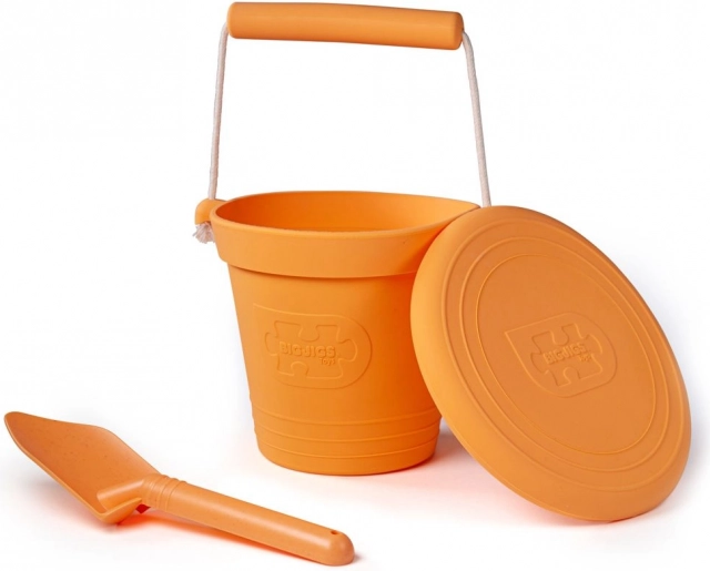 Găletușa din silicon BIGJIGS TOYS, durabilă și flexibilă, în culoare portocalie, este ideală pentru plajă, nisipar și grădină. Poate fi rulată, îndoită și comprimată fără a-și pierde forma, este sigură pentru copii, se curăță ușor și, datorită greutății reduse, încape în rucsac sau valiză. Perfectă pentru joacă creativă și aventuri zilnice.