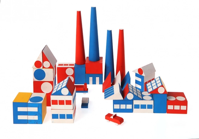 Acest set de construcție, realizat cu grijă din lemn masiv, are la bază proiectul istoric al lui Ladislav Sutnar din 1921. Piesele în culori primare și forme geometrice curate permit construirea de case, turnuri și întregi străduțe – de la compoziții simple până la un oraș elaborat. Copiii își dezvoltă motricitatea degetelor, gândirea logică și fantezia, iar adulții vor aprecia estetica atemporală și moștenirea designului funcționalist.