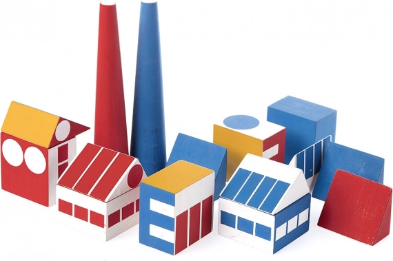 Setul este bazat pe conceptul original „Factory Town” din 1921. Culorile intense și formele curate stimulează imaginația copiilor și dezvoltă simțul estetic.