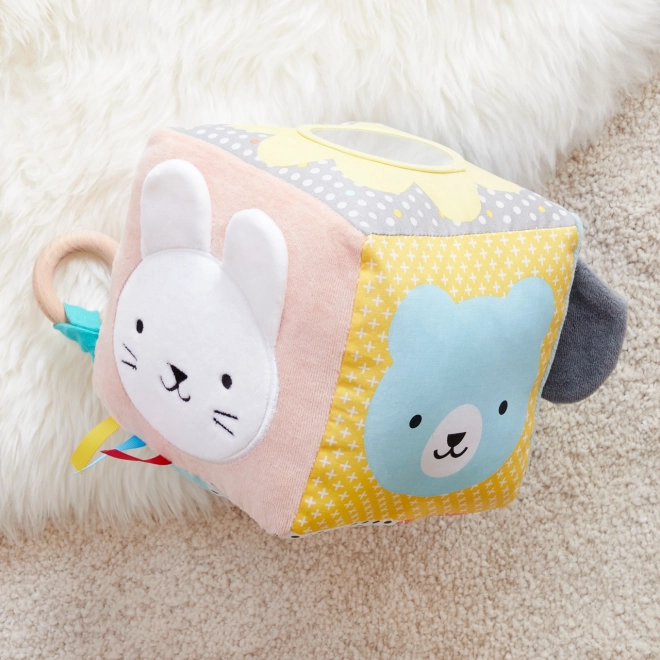 Acest cub textil este perfect conceput pentru dezvoltarea senzorială a copilului dumneavoastră. Datorită diversității de activități, cum ar fi fețe prietenoase de animale și diferite țesături, este ideal pentru explorarea fiecărui mic detaliu.