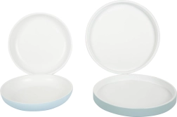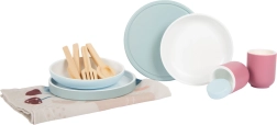 Compus din 12 piese, inclusiv farfurii, cești și tacâmuri. Perfect pentru micii bucătari.