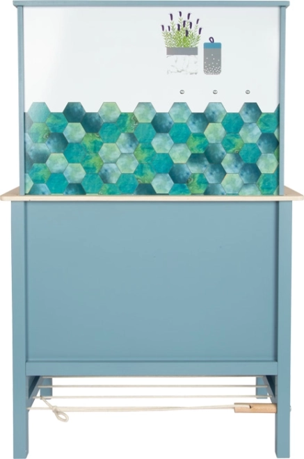 Suprafețele în frigider și cuptor sunt tipărite cu detalii de bucătărie pentru mai multă distracție. Panoul spate dublu față oferă un aspect modern cu faianță sau un design simplu albastru. Bucătăria este un complet excelent pentru alte produse și aparate din colecția Tasty.