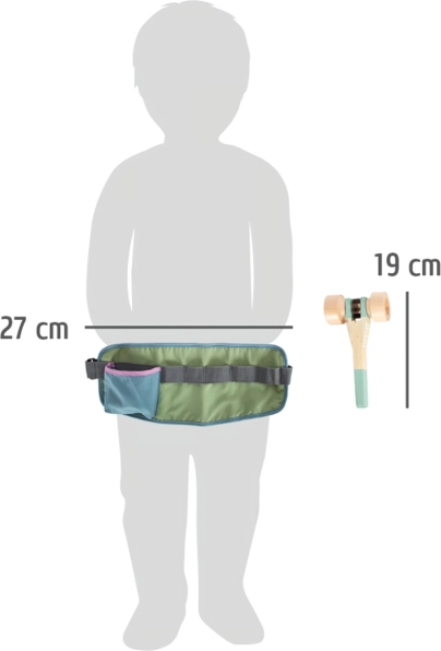 Curea reglabilă pentru copii, plină de instrumente din lemn, este accesoriul ideal pentru joacă imaginativă. Designul scandinav și construcția durabilă garantează distracție pentru băieți și fete.