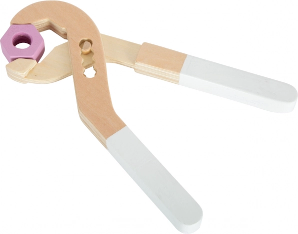 Uneltele din lemn, inclusiv cheia, clichetul, șurubelnița și cheița, permit diverse opțiuni de joc și învățare.