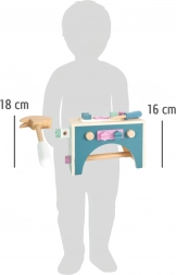 Aceast3 cutie de lemn cu unelte este ideal3 pentru copii care doresc s3 imite repara3iile reale și me3tr3s3ria. Design nordic simplist în nuan3țe pastelate, se potrivește perfect în orice camer3 de copil:
