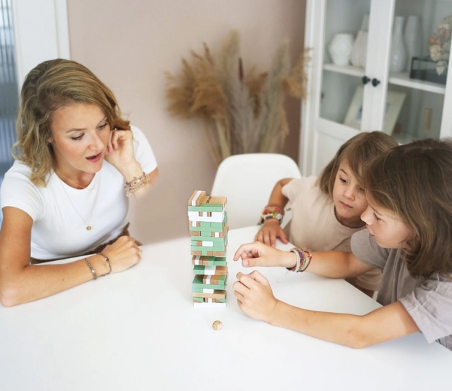 Turnul instabil Gold Edition aduce distracție de familie verificată într-un design elegant. Combinația de lemn natural, alb și nuanțe pastel la modă cu accente aurii transformă acest joc într-un accesoriu stilat pentru orice casă. Datorită celor 54 de piese din lemn de înaltă calitate cu modele diferite, te vei bucura de partide pline de suspans alături de prieteni și familie.