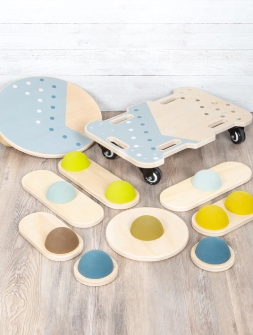 Transformați camera copilului într-o țară a aventurii în câteva secunde cu acești pietre de echilibru Adventure. Sunt fabricate din lemn masiv și semisfere de cauciuc care își schimbă poziția pe fiecare piesă pentru a crește dificultatea. Puteți folosi întregul set sau doar părți selectate din acesta și le puteți combina ușor cu alte produse din gama Adventure pentru a crea o pistă de obstacole.