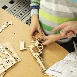 Cu revolverul Corsac de la Robotime, vă veți bucura de distracția oferită de asamblare, tragere și expunerea modelului finalizat. Datorită ghidului detaliat, veți reuși să îl asamblați într-o oră sau două.