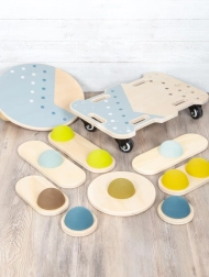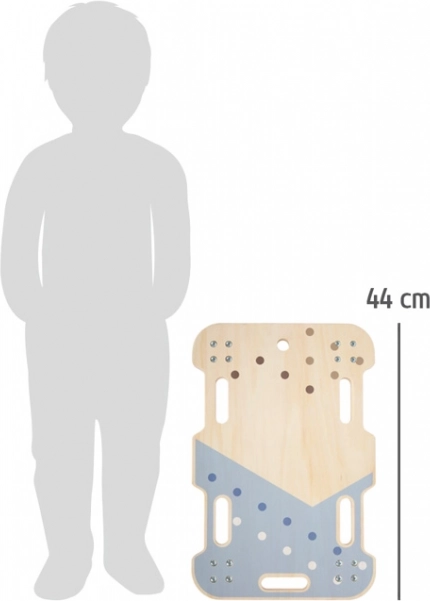 Placajul de echilibru de lemn Adventure este ideal pentru copiii mici care doresc o mișcare activă. Datorită găurii pentru funie și roților laterale, manevrarea este ușoară, în timp ce protecția din jurul găurilor protejează mâinile. Placajul se potrivește perfect în orice cameră de copil datorită simplității și execuției sale naturale.