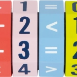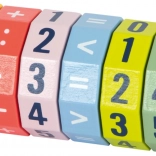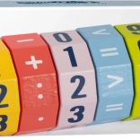 Șase inele rotative cu numere și simboluri permit crearea de exerciții de adunare, scădere, înmulțire și împărțire până la 99 – o cale distractivă de a înțelege bazele.