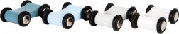 Setul include 4 mașinuțe (1 natur, 3 colorate). Roțile cauciucate asigură o coborâre lină, silențioasă și rapidă pe rampe.