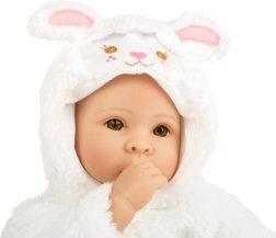 Această păpușă adorabilă în design de mielușel cucerește rapid inimile copiilor. Are un corp foarte moale, mâini, picioare și cap realizate realist din plastic netoxic și, datorită suportului de sprijin, poate sta singură în poziție șezândă. Include hăinuță de pluș, păturică și suzetă – ideale pentru îmbrățișat și exersarea abilităților de îngrijire.