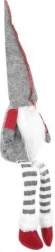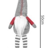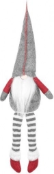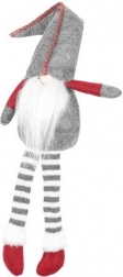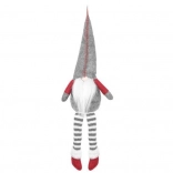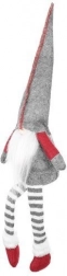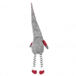 Spiriduș decorativ din textile, în combinație gri-roșu, are o căciulă înaltă ascuțită, picioare lungi în dungi și o barbă albă moale. Datorită profilului special pe partea din spate, stă stabil pe marginea unei mese sau a unui raft și conferă interiorului o notă caldă și primitoare.