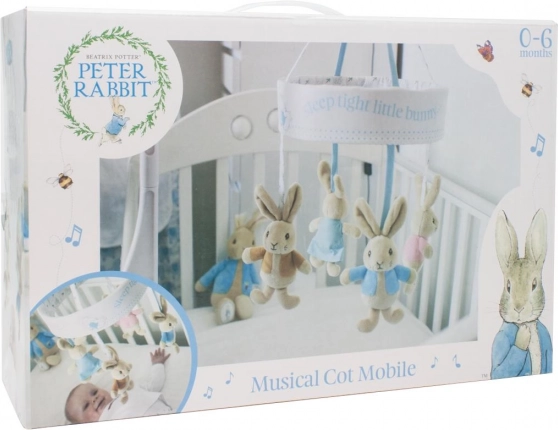 Caruselul conține patru figurine de iepurași: Peter, Flopsy, Benjamin și Cotton Tail, care adaugă camerei copilului farmecul poveștilor originale.