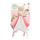 Culorile și modelele iepurașului stimulează dezvoltarea simțurilor copiilor, în timp ce nodul de pe colțul păturii este ideal pentru mestecat.