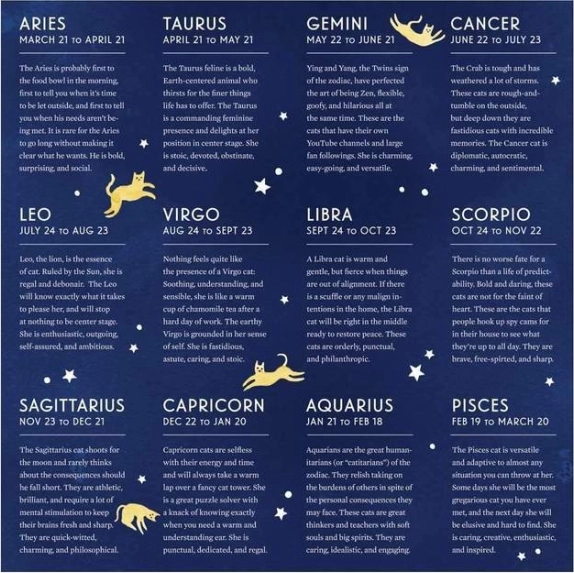Fiecare semn zodiacal este redat unic și aduce esența respectivului semn într-un stil jucăuș de pisică.