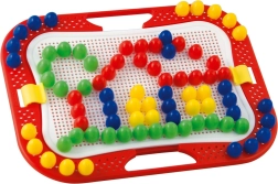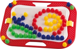 Acest set creativ de mozaic oferă copiilor de la 3 ani posibilități nelimitate de compunere a imaginilor și modelelor. Țepușele mari, ușor de apucat, cu cap rotunjit neted se introduc în orificiile plăcii perforate robuste, montată într-un cadru solid cu mânere. Jocul stimulează imaginația, dezvoltă coordonarea mână–ochi și întărește concentrarea.