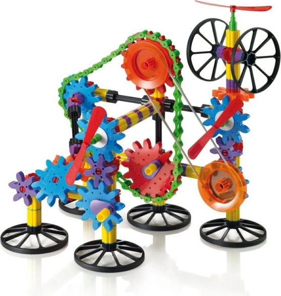 Componente colorate, tije, roți și angrenaje permit crearea de modele simple și complexe. Imaginația nu are limite.
