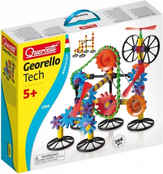 Setul Georello Tech transferă mișcarea de rotație între angrenaje aflate la distanță și ilustrează clar funcțiile mecanice de bază, similare celor întâlnite în mașinile reale. Datorită lanțului și curelei elastice, copiii pot conecta roțile dințate pe distanțe mai mari și pot crea construcții și mai complexe.