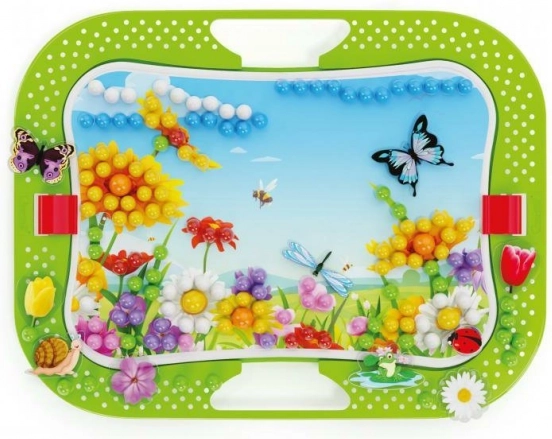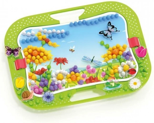 Creați-vă o grădină înflorită din pioneze! Pionezele clasice Quercetti în versiune colorată care reprezintă lumea naturii. Setul conține pioneze de culori și diametre diferite, prin așezarea cărora prindeu viață diverse peisaje, precum și o mulțime de autocolante și figurine de fluturi, libelule, buburuze și alte viețuitoare, cu care vă puteți popula propria lume naturală. Conținutul pachetului: 1 planșă perforată 28 × 20 cm, 2 imagini model, 300 de pioneze în 6 culori diferite, 16 figurine, 1 suport cu stativ, 1 creion perforator din lemn. Principalele caracteristici: dezvoltă motricitatea fină, creativitatea și imaginația; conține 316 butoane; pentru copii de la 3 ani.