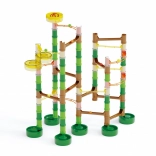 Descoperă aventura în junglă cu pista cu bile QUERCETTI Migoga Jungle! Datorită numeroaselor piese și construcției modulare, copiii își pot construi propriile trasee și pot urmări cum bilele alunecă pe rute diferite. Jocul dezvoltă motricitatea fină, creativitatea, imaginația spațială și gândirea logică și îi învață pe copii principiul cauză–efect. Materialele durabile asigură stabilitate și o durată de viață lungă.