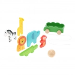 Descoperiți lumea fantastică a jucăriei noastre de tras din lemn cu animăluțe safari, care oferă copiilor nu doar distracție, ci și valoare educativă. Datorită combinației dintre joc și mecanismul de tras, copiii dobândesc abilități variate precum motricitatea grosieră și coordonarea mișcărilor.