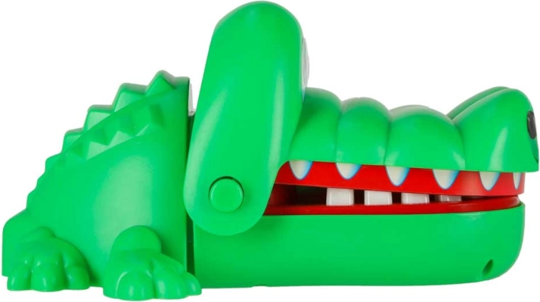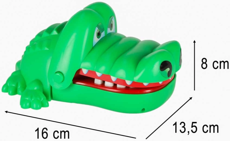 Jocul de îndemânare cu crocodilul este simplu, palpitant și captivant. Fiecare deschidere a fălcii stabilește aleator un dinte dureros, astfel încât nu știi niciodată când crocodilul va închide gura. Datorită dinților rotunjiți și siguri, jocul este potrivit și pentru copiii mai mici și dezvoltă excelent reflexele și răbdarea.