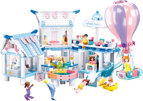 Intrați în lumea construcțiilor creative cu această vilă plutitoare cu piscină, alcătuită din 938 de piese. Nu doar că dezvoltă imaginația și motricitatea fină, dar le permite și copiilor să devină arhitecții propriei povești. Setul include 7 figurine detaliate, cu design inovator și părți ale corpului rotative și oscilante, garantând și mai multă distracție la joacă.