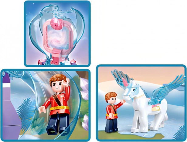 Setul prezintă o scenă de iarnă fermecată cu o structură asemănătoare unui castel, 247 de piese pentru joc distractiv.