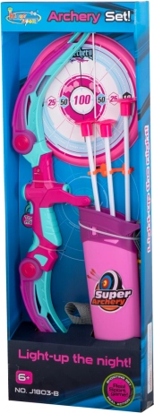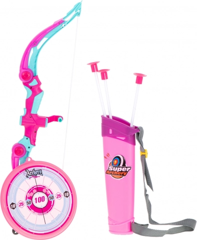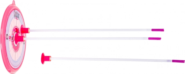 Set de tir cu arcul roz pentru copii oferă joacă sigură și distractivă atât acasă, cât și în aer liber. Arcul ușor din plastic cu coardă elastică și săgeți cu ventuză este ideal pentru antrenarea țintirii, îmbunătățește coordonarea, atenția și precizia. Setul include țintă, tolbă și 3 săgeți, astfel încât copiii pot organiza imediat competiții de tir distractive.