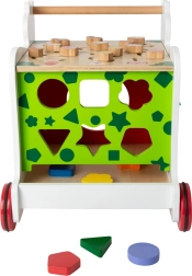 Cele șase piese ale sortatorului, labirintul lateral și cuburile rotative îi ajută pe copii să recunoască formele și culorile, să exerseze coordonarea mână–ochi și gândirea logică.