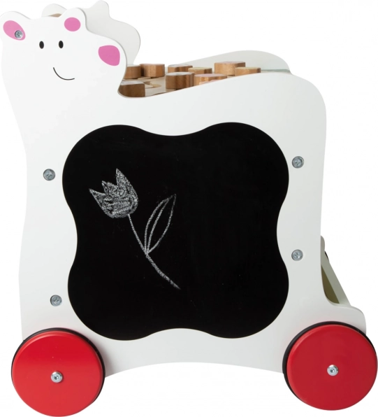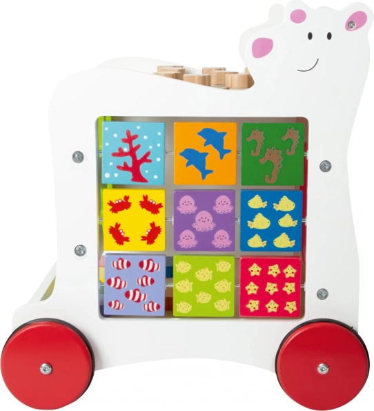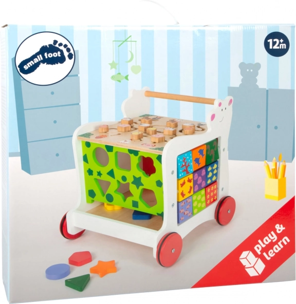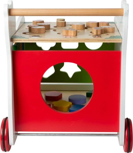 Datorită roților cauciucate, deplasarea este silențioasă și blândă cu toate tipurile de pardoseli. În plus, premergătorul oferă un spațiu de depozitare pentru cuburi și mărunțișuri, astfel încât colțul de joacă este întotdeauna ușor de pus în ordine.