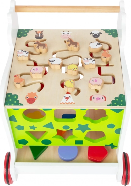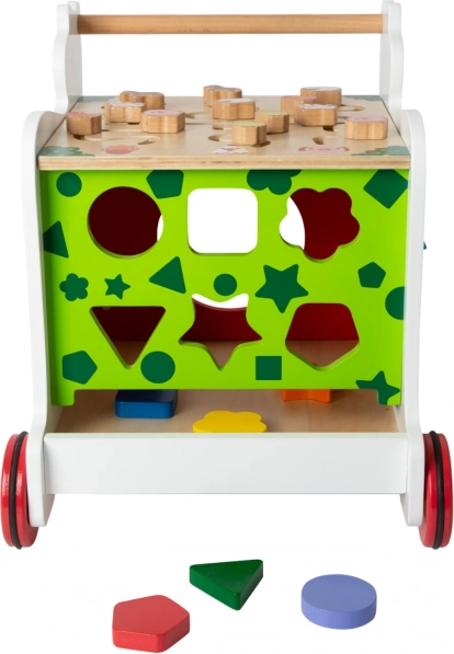 Descoperiți lumea pas cu pas. Acest premergător durabil, din combinație de placaj și lemn masiv, îi ajută pe copii să își exerseze în siguranță echilibrul și coordonarea, în timp ce activitățile integrate – sortatorul cu 6 piese, labirintul și cuburile rotative – consolidează percepția vizuală și gândirea logică. Tabla pentru desen cu cretă adaugă o dimensiune creativă învățării și jocului.