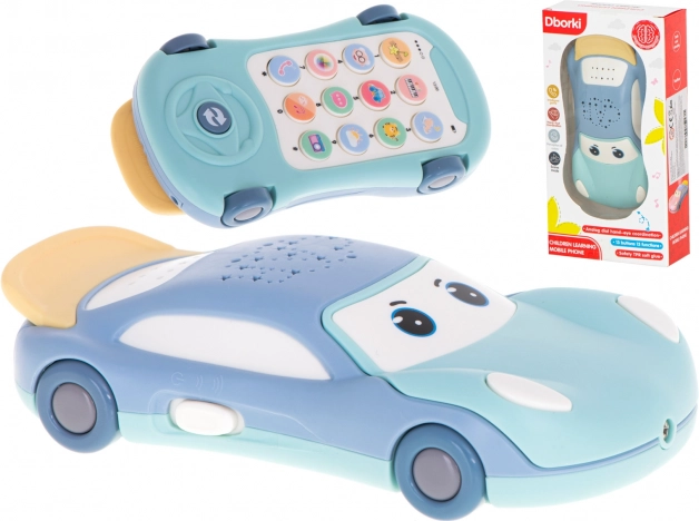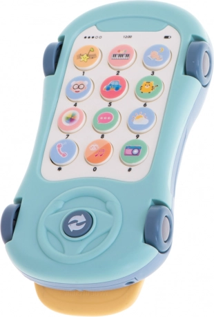 Pe partea inferioară a mașinii se află un telefon care impresionează prin multitudinea de opțiuni. Telefonul este echipat cu 13 butoane, fiecare având funcții diferite, în funcție de modul selectat. Nu este doar o jucărie excelentă, ci și un prim profesor de limba engleză! Telefonul învață denumirile culorilor, animalelor și membrilor familiei. Telefonul se pornește printr-un întrerupător lateral și are două moduri de volum. După 60 de secunde de inactivitate, jucăria se oprește singură. La apăsarea oricărui buton, mașina emite sunete și luminează cu LED-uri colorate. Jucăria are mai multe moduri de funcționare, primul fiind selectat implicit la pornire. Modurile sunt schimbate cu ajutorul unui buton mare aflat în partea de jos a telefonului, marcat cu două săgeți.