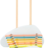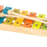 Fiecare lamelă metalică are propria culoare, astfel încât copiii pot asocia ușor sunetele cu culorile și pot învăța mai repede primele melodii.
