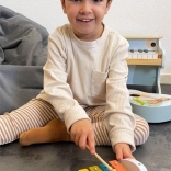 Acest xilofon din lemn, de înaltă calitate, este ideal ca introducere ludică în lumea muzicii și a ritmului. Lamele colorate îi ajută pe copii să diferențieze intuitiv sunetele și să compună primele cântecele, în timp ce baghetele solide din lemn masiv asigură lovituri confortabile și precise.