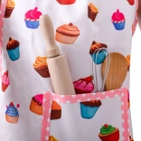 Outfitul de bucătărie cu motive de brioșe aduce o atmosferă veselă și creativă gătitului zilnic.