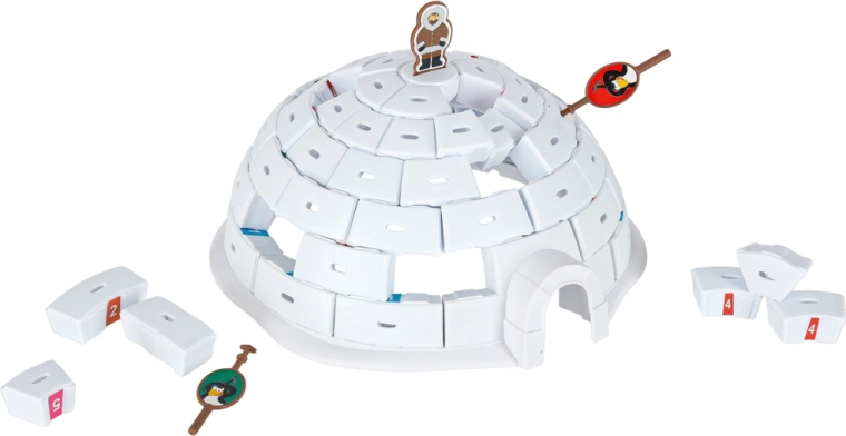 Intrați în pielea unor pinguini poznași și încercați să dărâmați igluul astfel încât exploratorul arctic să nu cadă. Cu ajutorul unui mic „împingător de gheață”, jucătorii scot pe rând cuburile de gheață și urmăresc cu emoție cine va provoca colapsul. Jocul este rapid, palpitant și perfect pentru serile de iarnă sau nopțile de vară.