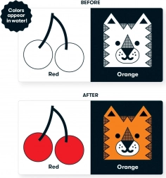 Lectura magică pentru cadă de la Mudpuppy transformă fiecare baie într-o descoperire plină de bucurie. Este suficient să scufunzi cărticica în apă, iar ilustrațiile alb-negru se transformă în imagini intens colorate. Copiii învață astfel culorile într-un mod jucăuș și observă schimbările pe care le aduce apa.