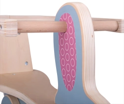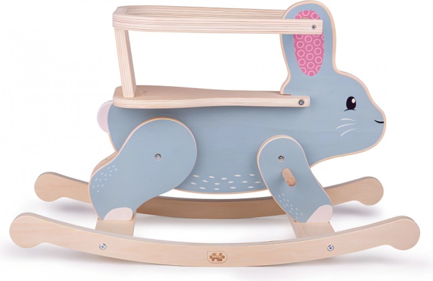 Acest iepuraș legănător stilat, realizat din placaj durabil, înveselește orice cameră de copii. Spătarul cu bara de protecție menține copilul ferm în șa, în timp ce mișcarea blândă de legănare susține dezvoltarea motricității, a echilibrului și a siguranței în mișcare.